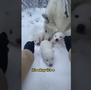 Slowly, she approached. Her body low, movements cautious but deliberate. The pups recognized her instantly, their whines turning to playful yips. She sniffed each one, nuzzling them with care, ensuring none were injured.