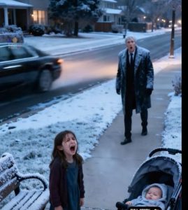 Leo was strapped into his stroller, wrapped in a thin blanket despite the dropping temperature. His tiny face was pale, his eyes wide and unmoving, as if he had been crying for so long that no tears remained. His small hands were stiff with cold.