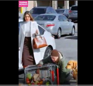 The woman with the groceries noticed what had happened and stepped forward to retrieve her items. She couldnโt help but notice that the man had parked recklessly and caused inconvenience to everyone around him. She decided to confront him politely, pointing out that he had not respected other drivers in the lot.
