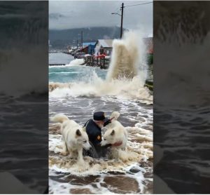 Thomas frowned, his instincts stirred by the animalโs relentless warning. Slowly, he opened the door and stepped down into the ankle-deep water to inspect the road ahead.