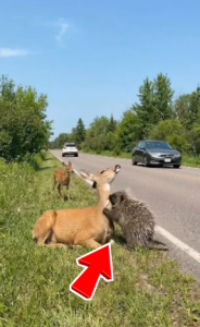 He stopped for a moment to assess the situation. Direct interference between two wild animals, especially one equipped with defensive quills, required caution. The porcupine was not aggressive in the traditional sense, but it could react instantly if threatened. The deer, on the other hand, was already stressed and highly reactive.