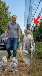 Wild animals, especially birds of prey, can be dangerous when stressed. Their instinct is to defend, to fight against anything that comes too close. But the man also saw something elseโexhaustion. The owl had been fighting the net for too long.