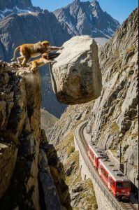 Passengers lurched forward in their seats from the sudden stop. Confusion spread through the carriages. โWhy have we stopped?โ people asked. Some looked out the windows and gasped at the sight of the mother monkey and her baby perched boldly on the trainโs front, still gesturing wildly.