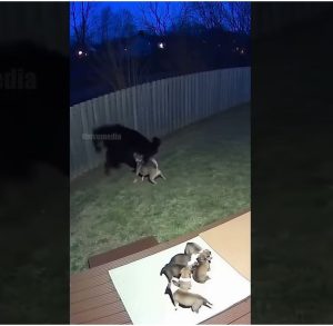 The puppies, sensing their motherโ€™s alarm, huddled together, shivering but safe behind her. Bella continued her assault, nipping at the bearโ€™s paws and distracting it from the vulnerable litter. Each time the bear lunged, Bella was there to intercept, her courage unwavering.