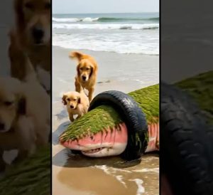 โRex,โ Daniel said, lowering himself to the sand, โwe need to stay calm, help this creature without hurting it.โ The dog wagged his tail, his golden coat sparkling with dew, and stepped forward, instinctively circling the shark, sensing its panic.