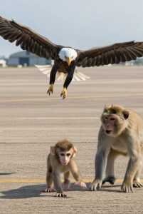 Mother Monkey Saves Her Baby from Eagle