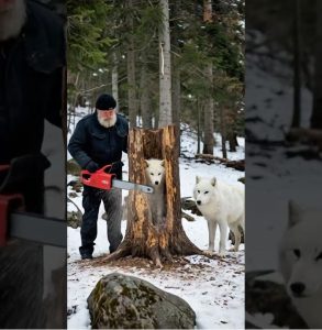 The forest had become a battlefield of survival. A brutal snowstorm had swept through the mountains days earlier, burying food sources beneath thick layers of ice and forcing predators to wander dangerously close to human settlements. The white wolf, a devoted mother, had a tiny cub hidden in a small den beneath a fallen pine tree. The cub was weak, barely able to stand, and depended entirely on her protection.