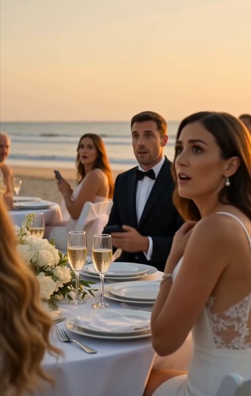 Behind them, the wedding continued—music playing, servers moving, guests unaware that something had just broken at the center of this perfect picture.