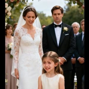 My eight-year-old daughter, Emma, stood beside me at the entrance, clutching her small basket of rose petals with trembling hands. She wore a pale pink dress that flowed softly around her knees, her hair carefully braided with tiny white flowers woven through the strands. Her wide eyes sparkled with pride and nervous excitement.
