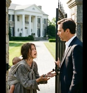 The rain fell in heavy sheets, turning the city streets into rivers of gray reflection. Expensive cars lined the entrance of the towering glass building, their polished surfaces glistening under the stormy sky. Inside, executives in tailored suits discussed million-dollar deals, completely unaware of the fragile figure standing just beyond the revolving doors.