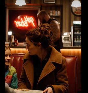 Her mind raced. Saying no felt risky. Saying yes felt worse. But before she could respond, he slid into the opposite seat anyway, placing his gloves carefully on the table.