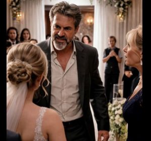 He glanced toward the chapel doors, where the wedding planner was signaling impatiently. Then he looked back at me, his voice low and heavy.