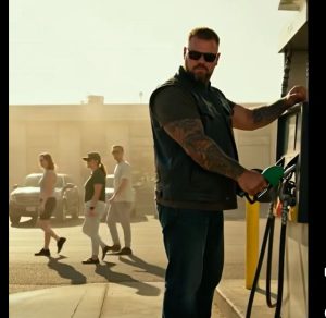 The biker reacted without thinking. One shove. One hard fall onto the pavement. The sound of bone hitting asphalt echoed across the lot.