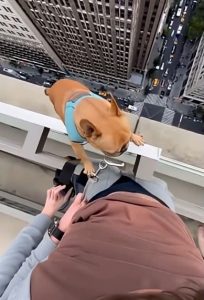 On a narrow balcony nearly twenty stories above the ground, a dog was trapped.