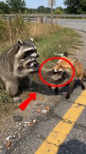 Quiet, swift, and opportunistic, the fox had noticed movement and quickly recognized vulnerability. The tiny raccoons were small, inexperienced, and exposed. What had been an ordinary crossing instantly became a life-threatening situation.