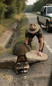 Raccoon Receives Quick Help From a Park Ranger