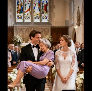Without a word, Jason knelt and, with a strength that surprised some of the nearby guests, lifted his mother into his arms. Margaret let out a small laugh at first, startled, and then froze, staring at him in shock. The crowd around them murmured softly, cameras raised, unsure whether to cheer or gasp. This was not part of the traditional wedding choreography. People had seen fathers lifted for photos, sometimes children, but never a grown son lifting his mother in the middle of a wedding.