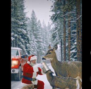 At first, it looked like a shadow moving awkwardly against the snowdrifts. As he drew closer, he realized it was a young deer, its slender legs tangled in a length of discarded wire half-buried under the snow. The animal struggled weakly, panicked but exhausted, its breath visible in the cold air. Cars passed by slowly, some drivers noticing but unsure what to do, others simply assuming someone else would handle it. Santa stopped immediately, stepping off the road without a second thought.