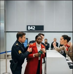 The embarrassment hit immediately. Families stopped to watch, commuters whispered, and her attempts to explain herself only seemed to make the situation worse. Within moments, she found herself being escorted away from the gate, her luggage pulled along, while the flight attendants looked on helplessly. Panic rose in her chest, but she kept her composure, explaining politely, answering questions, and showing every document twice. The officers, however, remained unmoved, their instructions strict and unwavering.