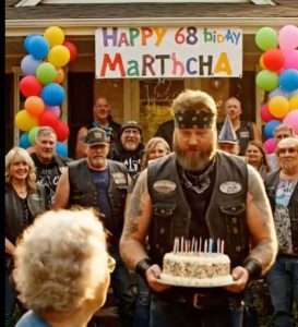 Reaper dismounted and approached her with surprising gentleness for a man of his size. โMaโam, we heard from a friend of a friend that today is your birthdayโand that youโve never had a proper party. We figured that was something we could fix.โ