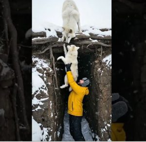 There was a tension in the air, a quiet intensity that made him hold his breath. He had read about the rare white wolves — how elusive they were, how their trust was nearly impossible to earn. But this wolf wasn’t running. She wasn’t aggressive. She was watching, waiting, and most importantly, communicating in a way only the desperate can.