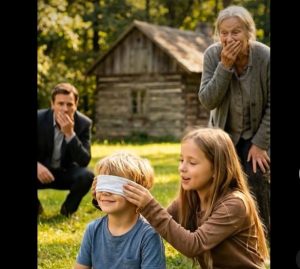 By the second day, tiny changes began. He lifted his head when the wind carried the scent of pine through the open window. His fingers brushed the wooden table when I placed a small bowl of berries in front of him. On the third day, he allowed himself to step outside, one hand gripping his father’s sleeve, the other brushing along the rough bark of a tree. He didn’t speak, but I noticed the light in his eyes flicker—just enough to signal recognition, curiosity, and perhaps even a trace of hope.