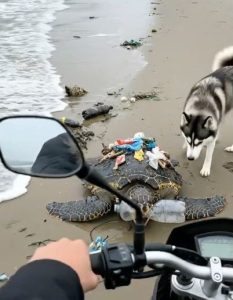 At the rescue center, the staff rushed out as soon as they saw the bike pull in. The sight was unusual enough โ€” a rugged motorcyclist and a Husky arriving with a wounded turtle โ€” but the urgency in their movements made everything clear.