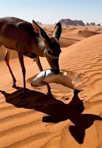 Its slender legs carried it lightly across the uneven ground, hooves pressing gently into the damp sand. The deer had wandered close to the shoreline before, often drawn by curiosity or the need for water, but today felt different. The air was still, almost too still, and every small sound seemed amplifiedโ€”the distant cry of a bird, the whisper of a retreating wave, the faint shifting of something unseen.