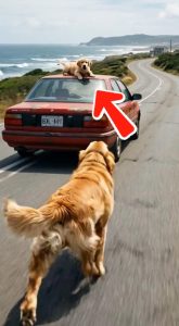 Sitting in the back seat of a nearby parked vehicle was a golden retriever named Max, a beloved family dog known for his calm personality and remarkable attentiveness. Max had accompanied his owner, a middle-aged man waiting for his wife to finish shopping. Usually relaxed and patient, Max suddenly sprang to life when his sharp eyes caught sight of the tiny puppy balancing on the moving carโs roof.