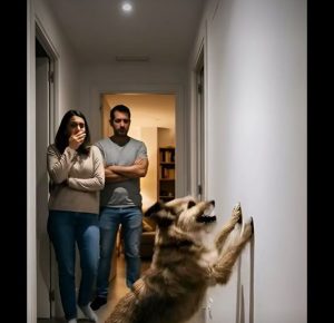 One evening, while Aaron was at work, Max suddenly began barkingโloud, frantic, nothing like his usual demeanor. He threw his weight against the wall, over and over again, as if trying to break through it. Julia panicked and pulled him back, her heart racing.
