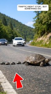 The first car passed dangerously close, its tires missing one of the turtles by mere inches. Another followed, even faster. The tiny creatures kept moving, unaware of the danger that surrounded them, unaware that each step could be their last.