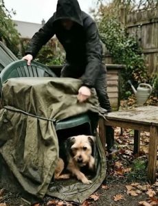 The dog flinched at first but didnโ€™t bite. When Daniel carefully scooped him up, wrapping the wet, trembling body in the jacket, the animal let out a single, broken whimper and pressed his head against Danielโ€™s chest, seeking warmth.