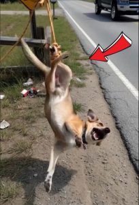 The rope was short โ barely six feet long โ attached to a rusty metal stake driven deep into the dry earth. It allowed Max just enough room to pace in a tight circle, reach a battered plastic bowl for water, and huddle under a leaky makeshift shelter during rain.
