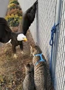 With terrifying speed and precision, the eagle folded its wings and dove. Its powerful talons extended like curved knives. In one swift, horrifying motion, the bird snatched the kitten from the ground. Mjelli let out another desperate, heart-wrenching scream as the eagleโs claws closed around her small body. Then, with a few powerful beats of its massive wings, the eagle rose into the air, carrying the kitten away.