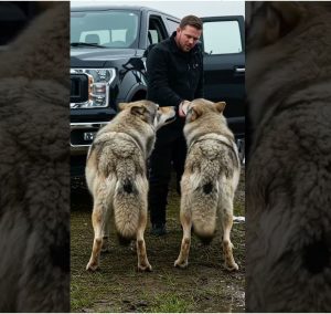 Instead of disappearing into the forest, the wolves did something no one could have predicted. The alpha wolf howled, and the pack moved together down toward the man. With remarkable coordination, they positioned themselves near a fallen tree that stretched across part of the rushing waters.