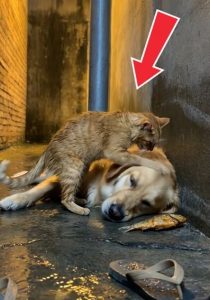 Oliver, still shaken, leaned into Cooperโs thick fur, letting out a soft, vibrating purr that was a mixture of relief and gratitude. He rubbed his cheek against Cooperโs injured shoulder, a feline “thank you” for the blood spilled in his name.