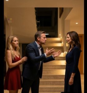 Standing beside her husband, Victor, was a young woman dressed in an elegant red dress, her hand confidently resting on his arm as if she already belonged there. The strangerโs eyes scanned the villa with open admiration, a faint smile playing on her lips. The air in the room grew cold, heavy with tension.