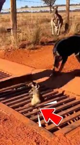 He stepped out into the morning air, carefully approaching the cattle guard. As he got closer, he could see the situation more clearly. The young kangaroo was not badly injured, but it was exhausted and trapped in a position that made escape impossible without assistance. The metal bars pressed against its body, restricting its movement and preventing it from turning or climbing out.