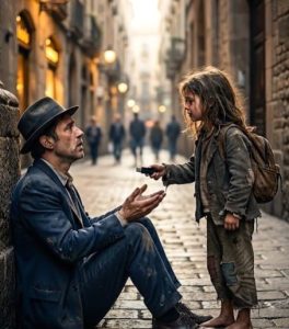 “Sir, you look cold,” she said in a soft, clear voice. “My grandma says when someone looks sad, we should share what we have.”
