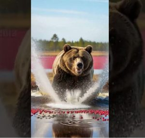 In one ferocious movement, the grizzly slammed into the alligatorโ€™s side. Her massive weight knocked the reptile partially out of the water, forcing it to loosen its grip for just a moment. That moment was all she needed.