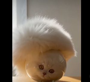 It is a legend as old as time: “If I fits, I sits.” However, when Mochi encountered a large, spherical glass bowl in the center of the kitchen island, he didn’t just sit; he initiated a miraculous rescue of his own boredom, performing a transfer of care from his feline form into a liquid-like state that has left millions of viewers in a state of untouchable amusement.