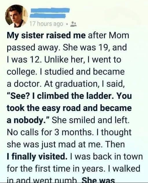My sister became my entire world after our mother passed away. She was only nineteen at the time, still at an age where most people are just beginning to figure out their own lives. I was twelve—confused, heartbroken, and trying to understand how everything could change so quickly.