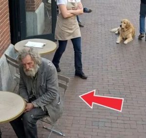 It was a rainy afternoon in a modest neighborhood cafรฉ, the kind of place where the smell of coffee clung to your clothes and soft music hummed in the background. The windows were fogged from the warmth inside, and only a handful of customers sat scattered across the room. At a corner table near the door sat an elderly man, his coat worn thin at the elbows, his hands wrapped around a chipped mug of tea. Beside him lay a large dog, calm and dignified, with a graying muzzle and eyes that seemed to understand far more than they revealed.