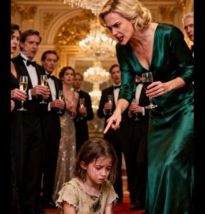 A small girl, no more than eight years old, knelt on the cold marble floor. Her delicate hands trembled as she picked up scraps of food from a plate placed carelessly before her. Guests passed by without concern, some whispering with cruel amusement, others pretending not to notice. To them, she was nothing more than an inconvenience โ a stray presence in a place reserved for the elite.