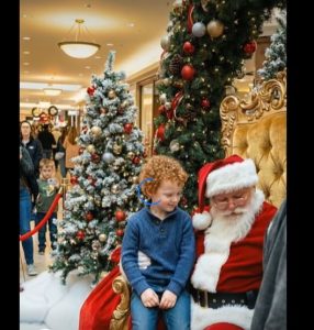 Sarah watched as Santaโs expression shifted. He didn’t give the standard “I’ll see what I can do” response. Instead, he closed his eyes and leaned his forehead against Leoโs. They stayed like that for a long, frozen moment. The mall around them seemed to fade away. The impatient crowd grew still.