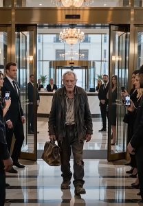 His coat was old, frayed at the sleeves. His shoes were dusty, worn by years rather than fashion. In one hand, he carried a weathered leather bag that looked decades old. His silver hair was slightly unkempt, and while his posture was upright, there was nothing outwardly impressive about him by the standards of the room.