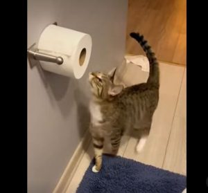 Ethologists explain that the spinning motion of a toilet paper roll mimics the movement of prey. When a cat “kills” the roll, they are engaging in an ancient hunting ritual. Milo wasn’t being bad; he was being an apex predator in a world of soft, quilted tissues. This “Instinctive Play” is why the video is shared so massively; itโ€™s a relatable look at the wild animal that lives on our couches.