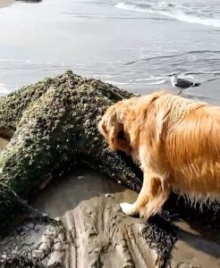 Sensing something unusual, his owner called out to him, but Max did not respond. Instead, he ran toward the object with urgent determination, his paws kicking up wet sand behind him.