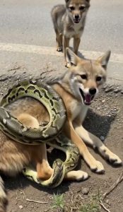 The predator had struck quickly, and now both animals were locked in a tense and dangerous battle. The fox, though agile and intelligent, was clearly struggling to break free. Its breathing was rapid, its movements increasingly weak as the snakeโs grip tightened with every passing second.