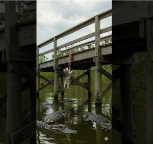 The puppy whimpered again, and Samuel spoke to it in a soft, reassuring voice. โItโs okay, little guy. Iโve got you.โ His calm tone was deliberate, meant to convey security to the frightened animal. Crocodiles are sensitive to sudden movement, and any panic could provoke an attack. Samuel knew this and kept his movements smooth, even as the reptiles inched closer.